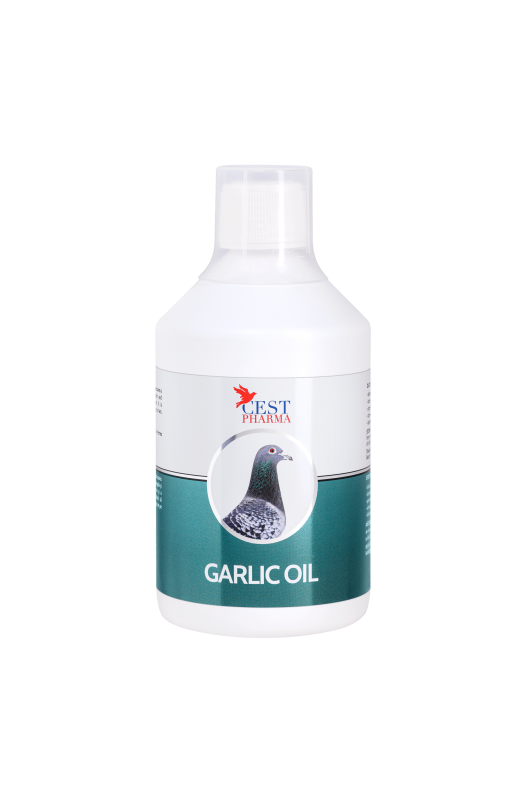 GARLIC OIL este un supliment alimentar, care promovează starea generală bună, asigură o mai bună circulație a sângelui și îmbunătățește funcționarea sistemului digestiv. Se recomandă ca porumbeii să primească GARLIC OIL de două până la de trei ori pe săptămână, pe tot parcursul anului.